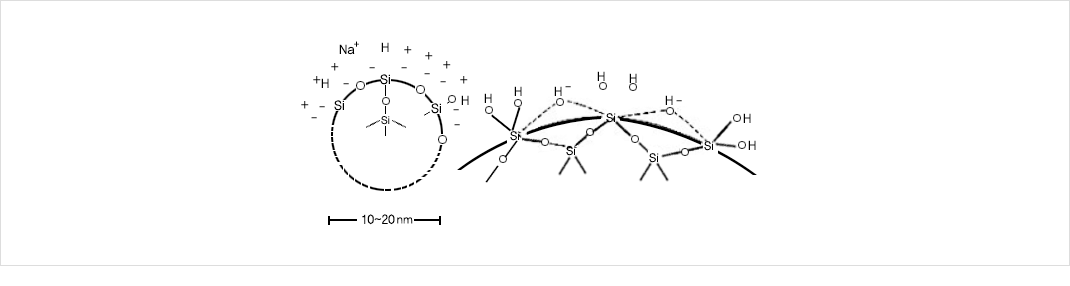 콜로이드 상태의 실리카 분자로 큰 표면적을 및 균일한 세공을 가지는 실리카겔을 얻을 수 있다.함침제 및 충전제